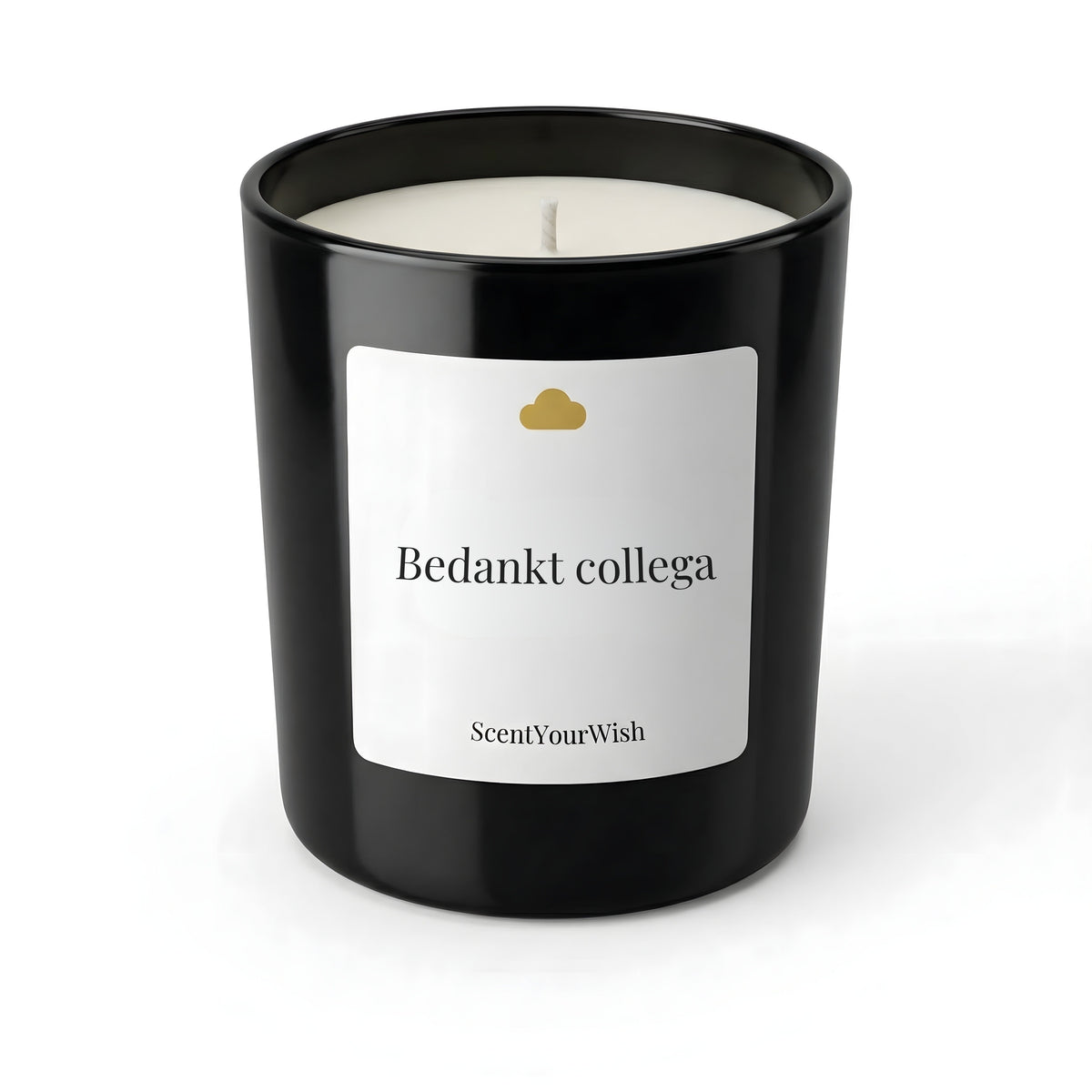 Geurkaars met tekst ""Bedankt collega"". Warme boodschap om sfeer en gezelligheid te brengen.