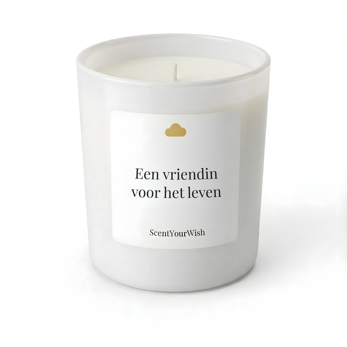 Geurkaars met tekst ""Een vriendin voor het leven"". Warme boodschap om sfeer en gezelligheid te brengen.