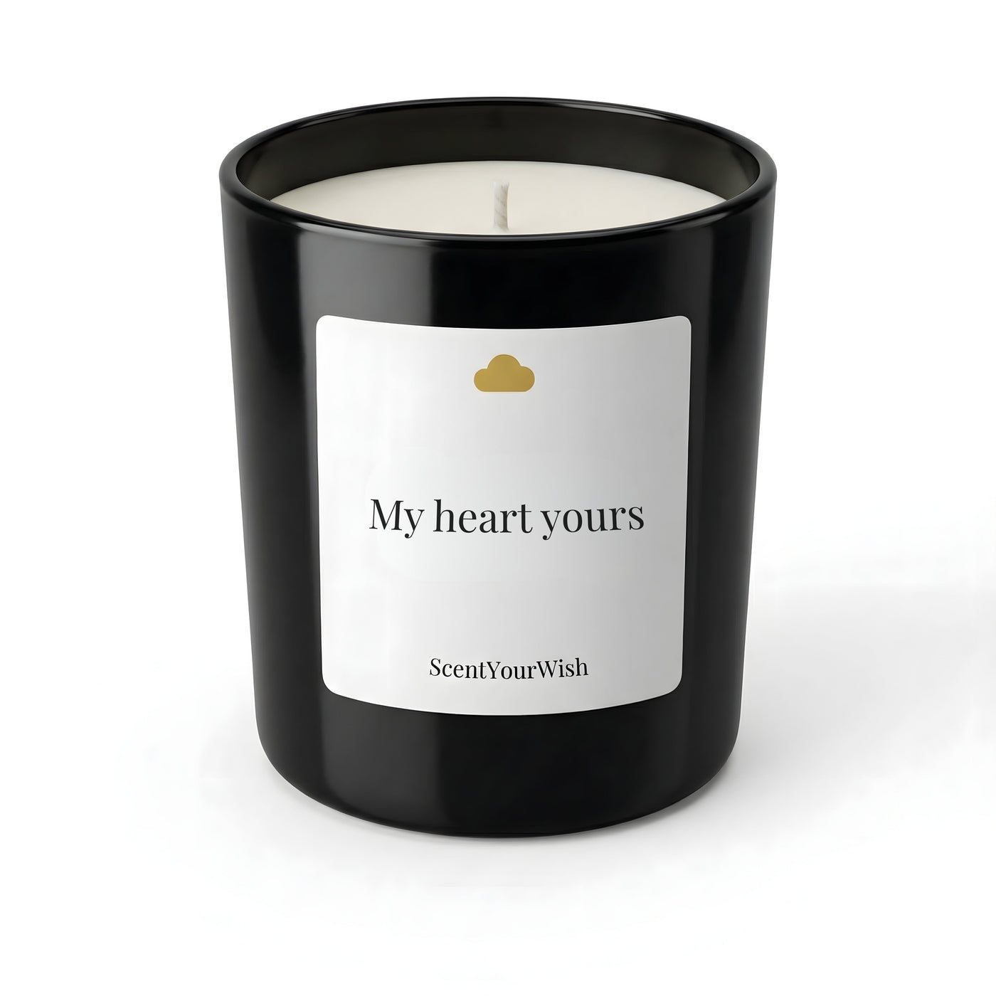 Geurkaars met tekst ""My heart yours"". Warme boodschap om sfeer en gezelligheid te brengen.
