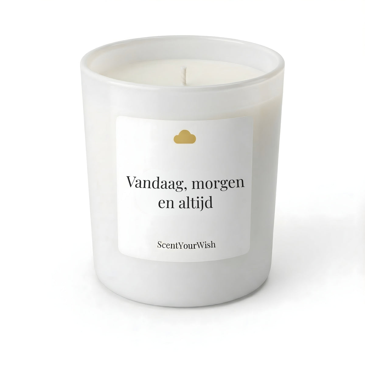 Geurkaars met tekst ""Vandaag, morgen en altijd"". Warme boodschap om sfeer en gezelligheid te brengen.